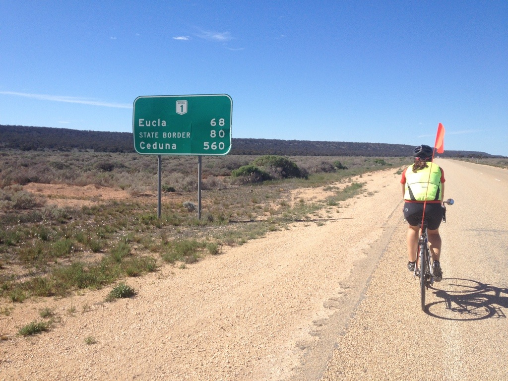 We’ve just come back from dinner with Gill and Paul. We struggled to sit up and hold a conversation. My eyelids are dropping, Mel’s asleep, and the zzzzz are calling. Up and at it again tomorrow. And over the WA-SA border actually. Another big milestone and something to help keep our legs turning. Here’s hoping for a change in wind direction. Night. Sogni d’oro x