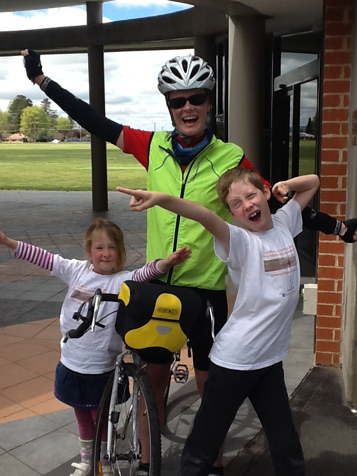 The first time my heart went into my mouth was seeing my brother at the bottom of Awaba. He was standing there with a wave and an enormous grin on his face. I then turned at the bottom of the hill to head towards the rotunda. I’d seen some amazing things in the previous 48 days but the scene that met me at the rotunda rivalled them all. I heard everyone before I could really take it all in, a heap of kids holding streamers that I had to ride through, screams and whooping and clapping, champagne popping, hugs all round. Smiles. It was just brilliant. I couldn’t have wished for a more fantastic end to what has been an adventure of a lifetime.